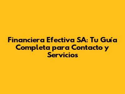 ÂżCĂłmo Contactar a Financiera Efectiva SA? (Contacting Financiera Efectiva SA)