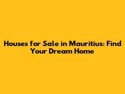 Hey guys! Are you dreaming of owning a slice of paradise? Look no further than Mauritius! This stunning island nation off the coast of Africa isn't just a vacation hotspot; it's also a fantastic place to call home. In this article, we will explore the vibrant houses for sale in Mauritius, giving you the lowdown on why this should be your next big move. We'll cover everything from the types of properties available to the best locations and what makes Mauritius such a desirable place to invest. So, grab a cup of coffee, sit back, and let’s dive into the world of Mauritian real estate!