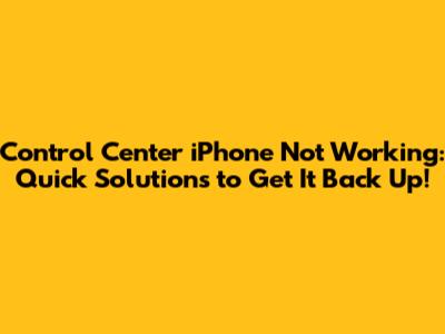 Fix IPhone Control Center: Quick Solutions