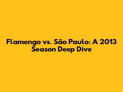 Hey guys, let's rewind to 2013 and dive into a season where two Brazilian football giants, Flamengo and São Paulo, battled it out on the pitch. This wasn't just any season; it was a year filled with drama, triumphs, and unforgettable moments for both clubs. We're going to break down their performances, key players, and overall impact on the football landscape. So, grab your jerseys, and let's get started!