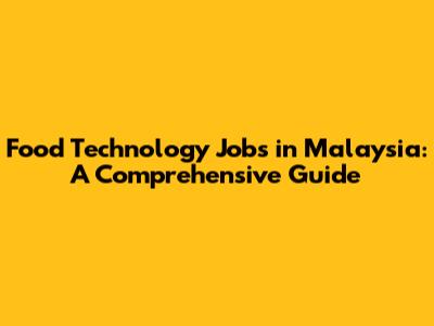 Where to Find Food Technology Jobs in Malaysia