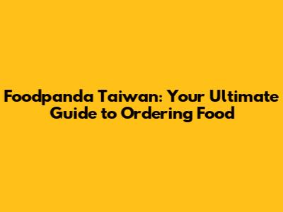 Foodpanda Taiwan: Your Ultimate Guide To Ordering Food