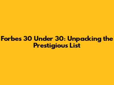 Forbes 30 Under 30: Unpacking The Prestigious List
