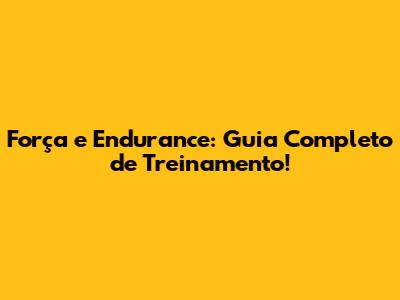 Força E Endurance: Guia Completo De Treinamento!