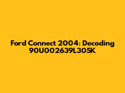 Hey guys! Let's dive deep into the specifics of the 2004 Ford Connect, focusing on what the alphanumeric code 90U002639L305K tells us. This article aims to provide a comprehensive understanding of the vehicle, its features, potential issues, and how this specific code might relate to replacement parts or vehicle identification. Whether you're a car enthusiast, a mechanic, or simply an owner of a 2004 Ford Connect, this breakdown will offer valuable insights. Understanding your vehicle is key, and this detailed exploration will help you stay informed and proactive in its maintenance and care. So, buckle up and get ready to explore the ins and outs of this popular van!