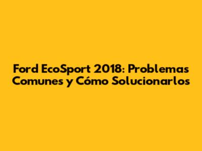 Ford EcoSport 2018: Problemas Comunes Y Cómo Solucionarlos