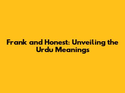 Frank And Honest: Unveiling The Urdu Meanings