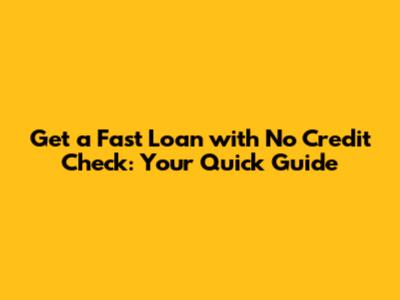 Get A Fast Loan With No Credit Check: Your Quick Guide