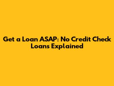 Get A Loan ASAP: No Credit Check Loans Explained