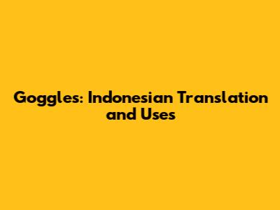 Goggles: Indonesian Translation And Uses