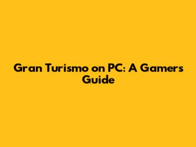Gran Turismo On PC: A Gamer's Guide