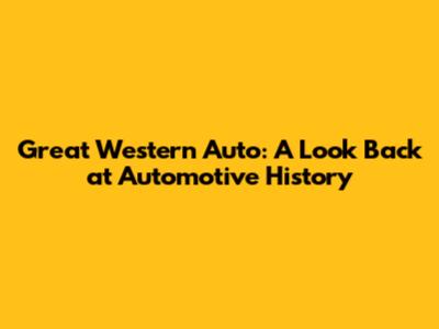 Great Western Auto: A Look Back At Automotive History