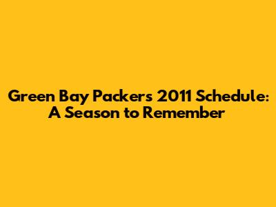 Green Bay Packers 2011 Schedule: A Season To Remember