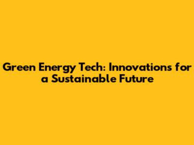 Green Energy Tech: Innovations For A Sustainable Future