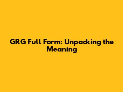GRG Full Form: Unpacking The Meaning