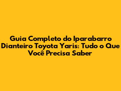 Guia Completo Do Iparabarro Dianteiro Toyota Yaris: Tudo O Que Você Precisa Saber