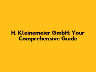 H. Kleinemeier GmbH: Your Guide To Excellence