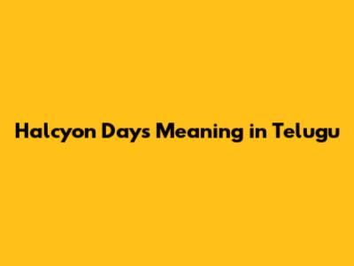 Halcyon Days Meaning In Telugu: Find Out!