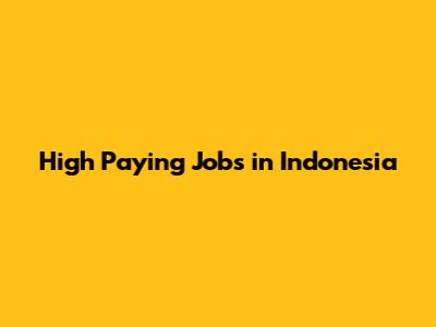 High Paying Jobs In Indonesia