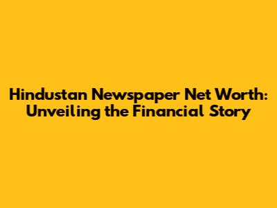 Hindustan Newspaper Net Worth: Unveiling The Financial Story