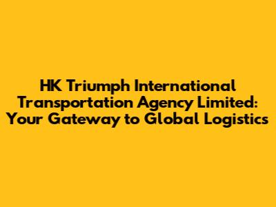 Hey guys! Ever wondered how goods seamlessly travel across the globe? Well, a big part of that magic is thanks to international transportation agencies. And today, we're diving deep into one such agency: HK Triumph International Transportation Agency Limited. This isn't just another company; it's a key player in the intricate world of global logistics, ensuring that your products reach their destination safely and efficiently. So, buckle up as we explore what makes HK Triumph tick and why they might just be the perfect partner for your international shipping needs.