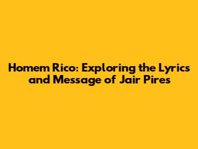 Homem Rico: Lyrics Analysis And Jair Pires's Message