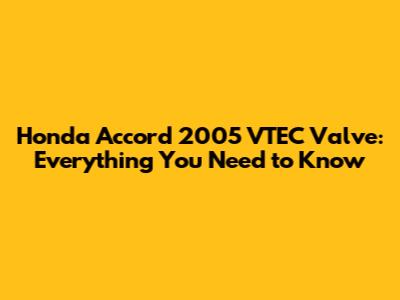 Honda Accord 2005 VTEC Valve: Everything You Need To Know