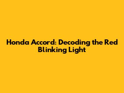 Honda Accord: Decoding The Red Blinking Light