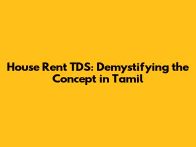 House Rent TDS: Your Guide To Understanding In Tamil