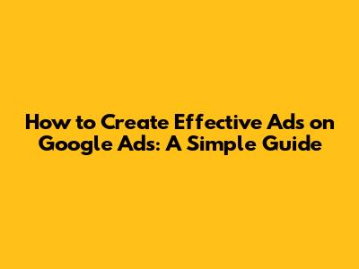 How To Create Effective Ads On Google Ads: A Simple Guide
