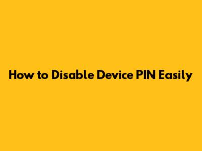 How To Disable Device PIN Easily
