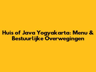 Huis Of Java Yogyakarta: Menu & Bestuurlijke Overwegingen