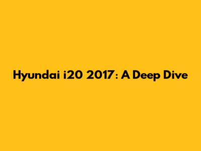Hyundai I20 2017: A Deep Dive