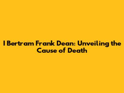I Bertram Frank Dean: Unveiling The Cause Of Death