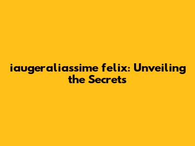 Iaugeraliassime Felix: Unveiling The Secrets