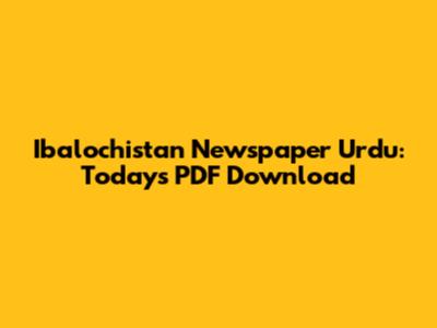 Ibalochistan Newspaper Urdu: Today's PDF Download