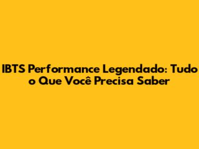 IBTS Performance Legendado: Tudo O Que Você Precisa Saber