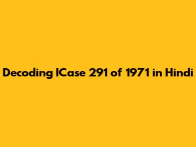 Hey guys! Ever stumbled upon a legal document and felt completely lost? Well, you're not alone. Legal jargon can be a beast, especially when you're dealing with something as specific as ICase number 291 of 1971 in Hindi. So, let's break it down. Think of this as your friendly guide to understanding this particular case. We'll explore what it means, why it matters, and how to navigate the complexities. This isn't just about the case itself, it's about understanding a slice of legal history in India, and doing so in a way that's actually accessible. Ready to dive in?