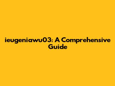 Ieugeniawu03: A Comprehensive Guide