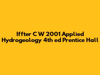 Let's dive into the world of Applied Hydrogeology with a focus on Iffter C.W.'s 2001 fourth edition published by Prentice Hall. This book is a cornerstone in the field, offering a comprehensive look at the practical applications of hydrogeology. For anyone studying or working in groundwater resources, environmental engineering, or geology, this text is often considered essential reading. We're going to break down why this particular edition remains relevant, what key topics it covers, and how it stands up against more recent publications. Understanding groundwater is crucial for managing water resources, predicting contaminant transport, and addressing environmental challenges. Iffter's book provides the fundamental knowledge and methodologies needed to tackle these real-world problems.