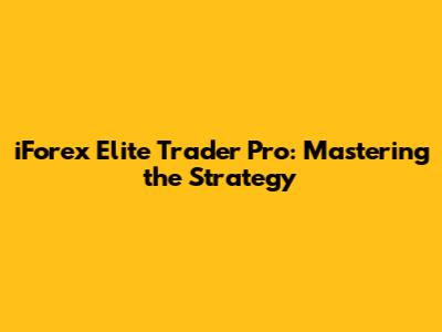 IForex Elite Trader Pro: Mastering The Strategy