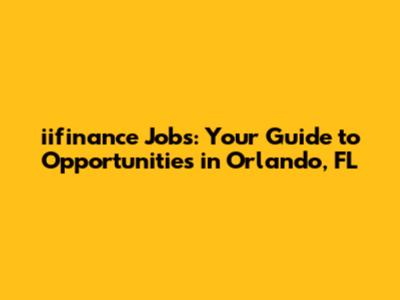 Where to Find iifinance Jobs in Orlando