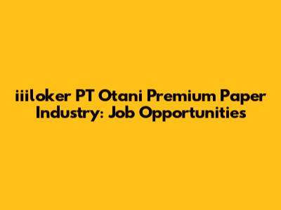 Iiiloker PT Otani Premium Paper Industry: Job Opportunities