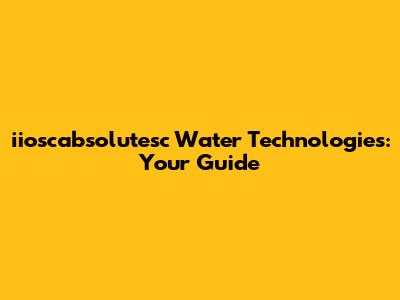 Iioscabsolutesc Water Technologies: Your Guide