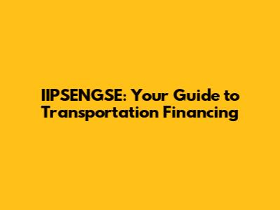 IIPSENGSE: Your Guide To Transportation Financing