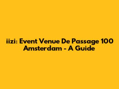 Iizi: Event Venue De Passage 100 Amsterdam - A Guide