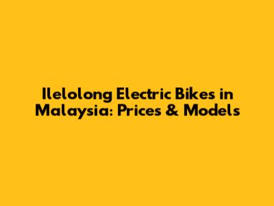 Ilelolong Electric Bikes In Malaysia: Prices & Models