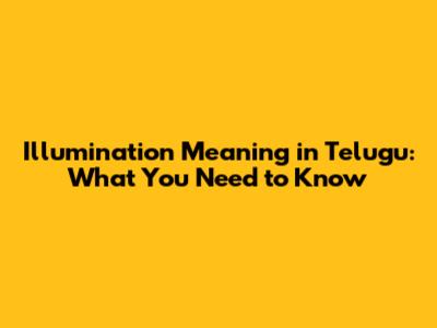 Illumination Meaning In Telugu: What You Need To Know