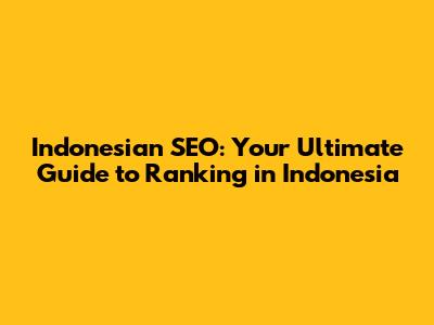 Indonesian SEO: A Comprehensive Guide