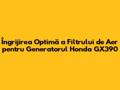 Importanța Vitală a Filtrului de Aer pentru Generatorul GX390